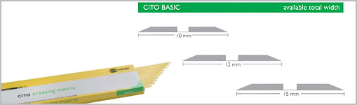 CITO BASIC is the best possible creasing system for small and medium runs. Developped on film base with plastic shoulders. Never again any compromises. Now available for all uses a product in the CITO class And that makes the difference.